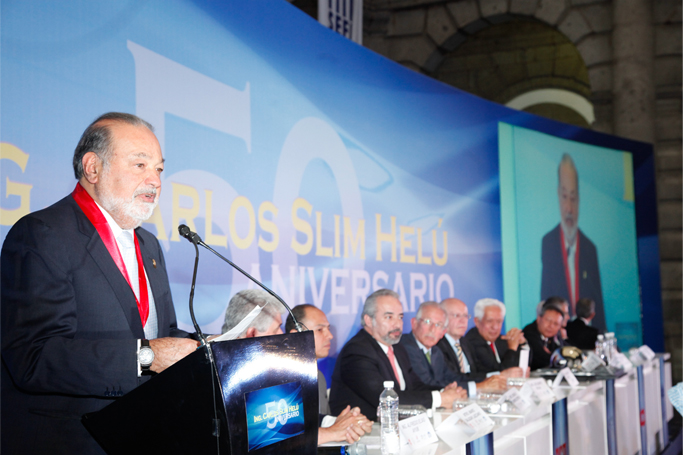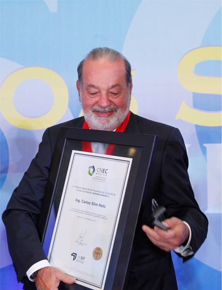 Al cumplir 50 años de haberse titulado, el Ingeniero Slim recibió un emotivo homenaje organizado por la Asociación de Ingenieros y Arquitectos de México (AIAM), el Colegio de Ingenieros Civiles de México (CICM), la Cámara Mexicana de la Industria de la Construcción (CMIC), la Sociedad de Exalumnos de la Facultad de Ingeniería de la UNAM (Sefi) y la Cámara Nacional de Empresas de Consultoría (CNEC). El reconocimiento conmemorativo lo recibió el Ingeniero Slim de manos del Rector de la UNAM, Doctor José Narro Robles.