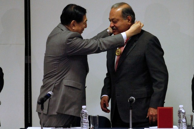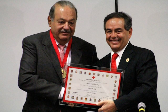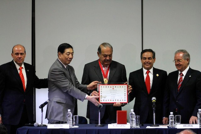 Mr. Carlos Slim Helú was awarded Red Cross Badge of Honor and Merit due to his long-standing humanitarian trajectory. The medal was imposed to him by Mr. Daniel Goñi Díaz, president of Mexico's Red Cross, and Taderatu Konoe, president of Red Cross International Federation and Red Crescent Societies.