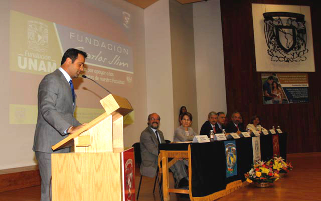 During the scholarship delivery ceremony the President of the UNAM Foundation, Mr. Rafael Moreno Valle was present, and in representation of the Carlos Slim Foundation Mr. Roberto Slim Seade attended this ceremony.