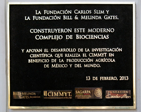 EL BATÁN, MEXICO, 13 FEBRUARY 2013- With the inauguration of the new research complex at the International Maize and wheat Improvement Center (CIMMYT), the Bill & Melinda Gates Foundation and the Carlos Slim Foundation reaffirm their support for cutting-edge research. At a cost of US$ 25 million, the new advanced bioscience research facilities are located at CIMMYT headquarters only 45 kilometers (20 miles) from Mexico City.