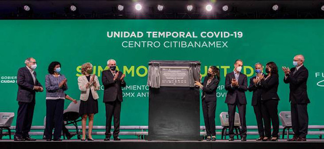 In the ceremony, a plaque to honor efforts made by the health professionals was unveiled, to commemorate the reconversion of the Citibanamex Center into the TCU.