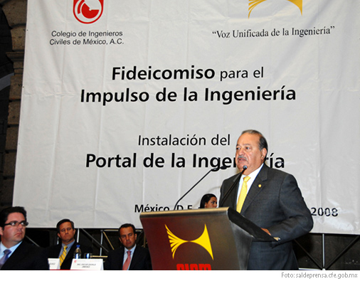 Eng. Carlos Slim participated in the opening ceremony of the event Fideicomiso para el Impulso de la Ingeniería organized by the Colegio de Ingenieros Civiles de México (Civil Engineers College) in which the new web site iNGENET was introduced, created and sponsored by TELMEX.